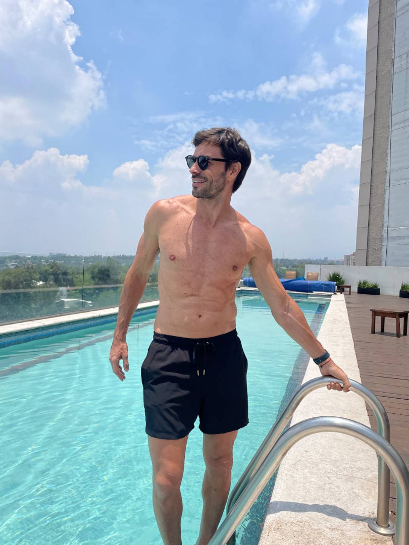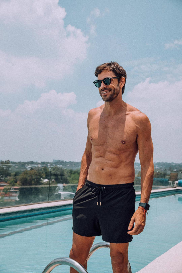 La tela tiene 5% strech, es cómodo y ligero. De secado rápido.