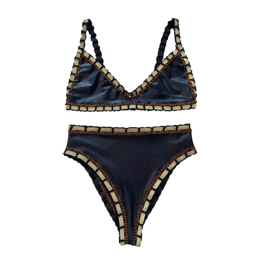 Bikini artesanal TOP BALCONETTE negro wet & chocolate