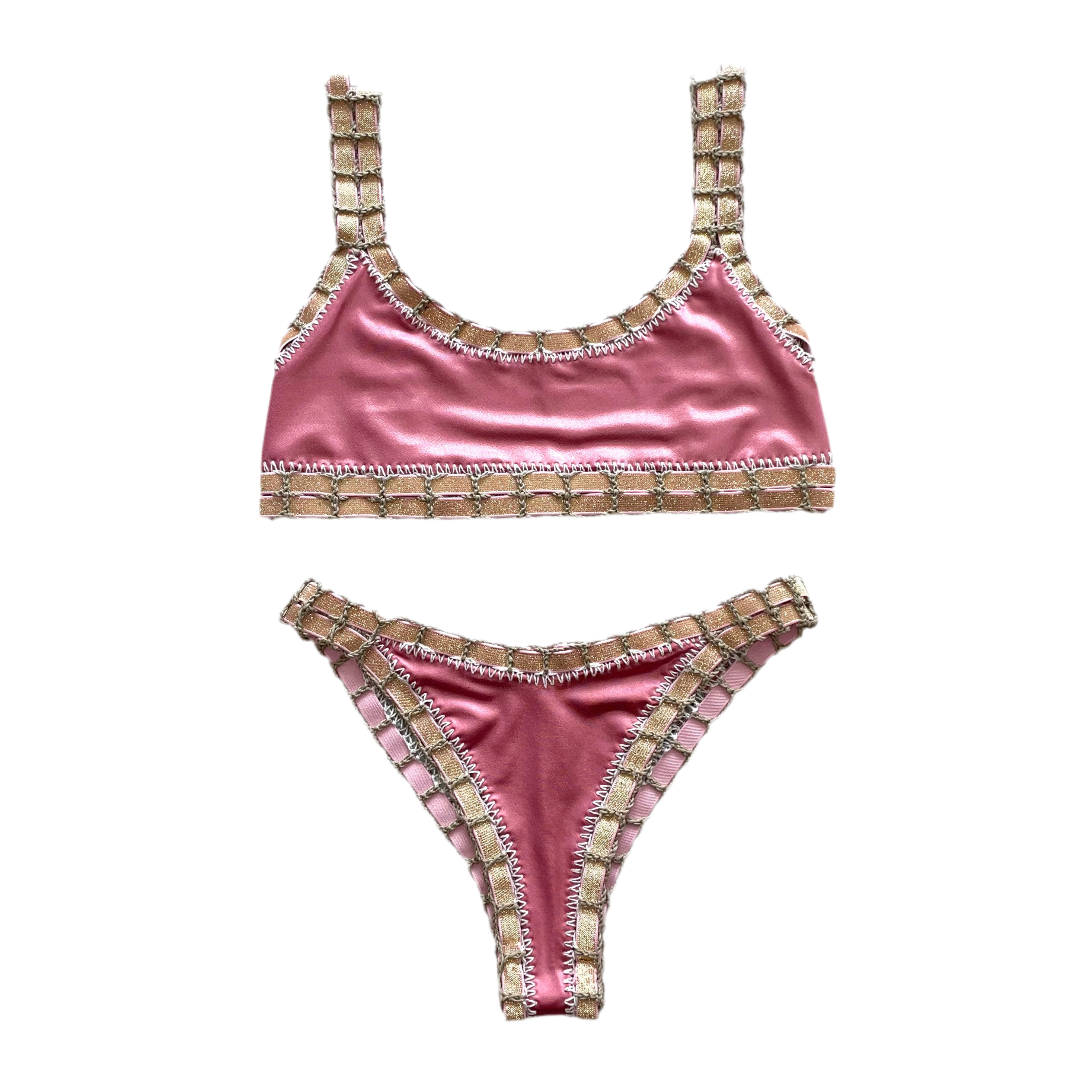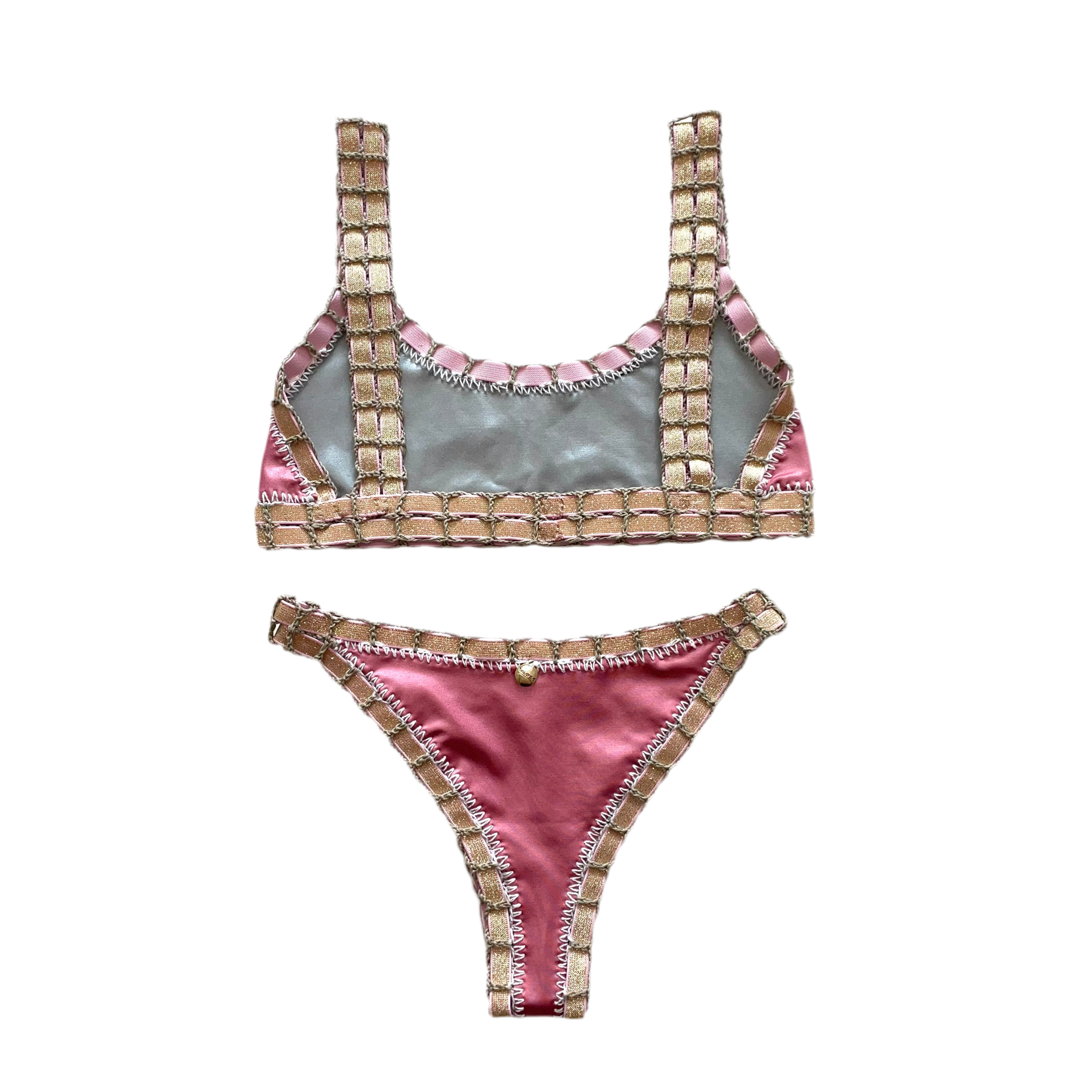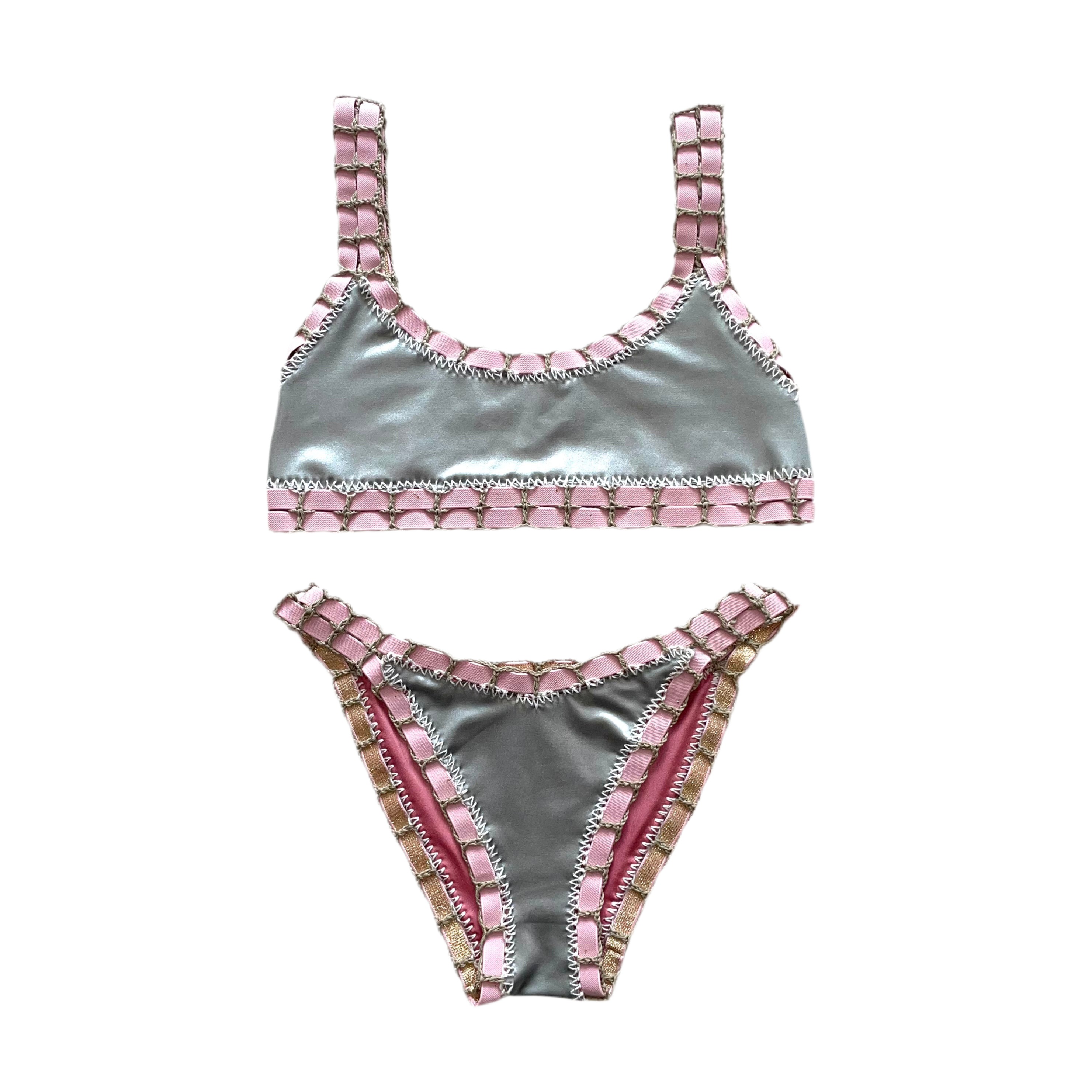 Bikini artesanal TOP SPORT rosa wet & plata wet