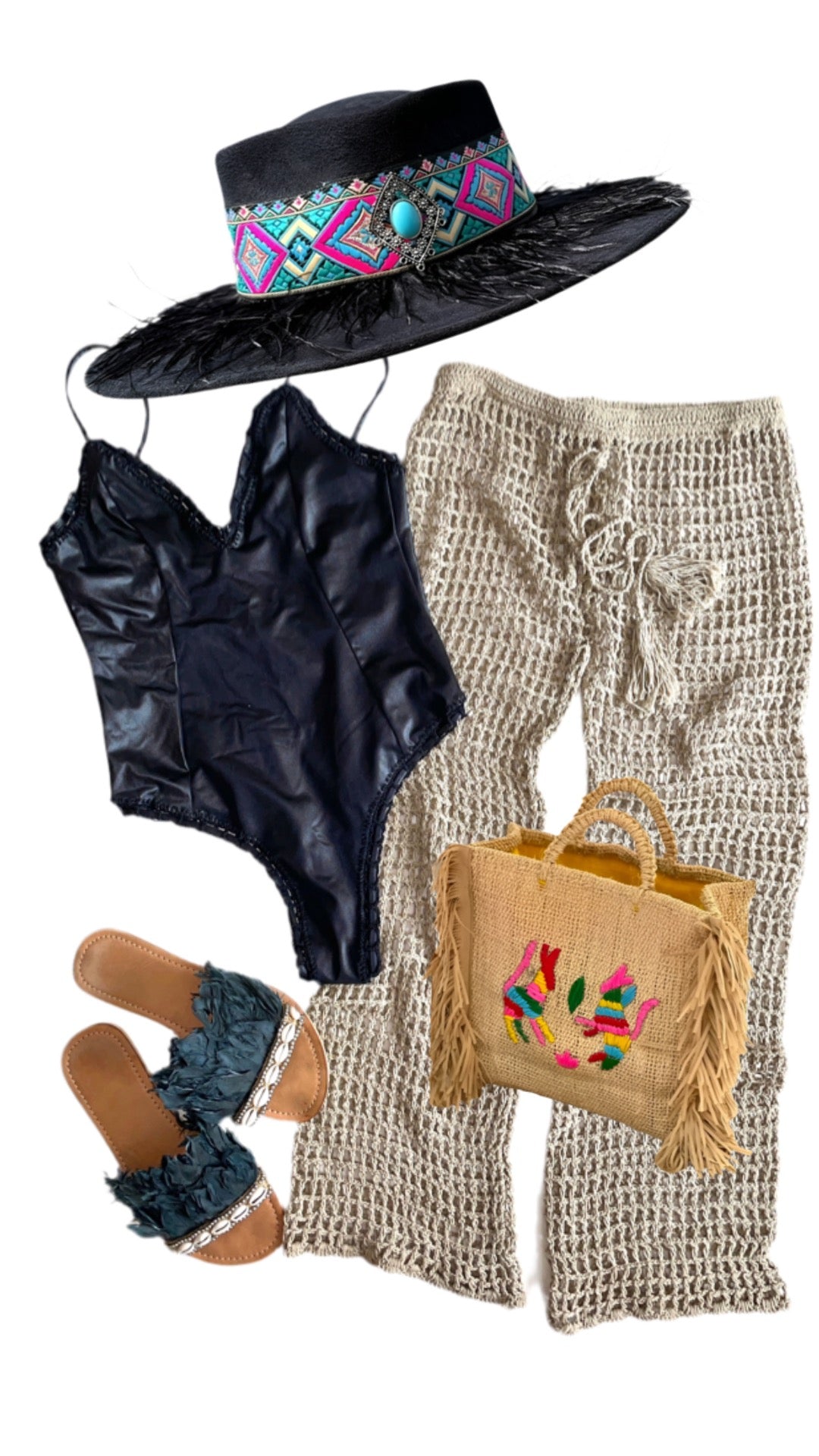 TOTAL LOOK!! sombrero + traje de baño + bolsa + pantalon
